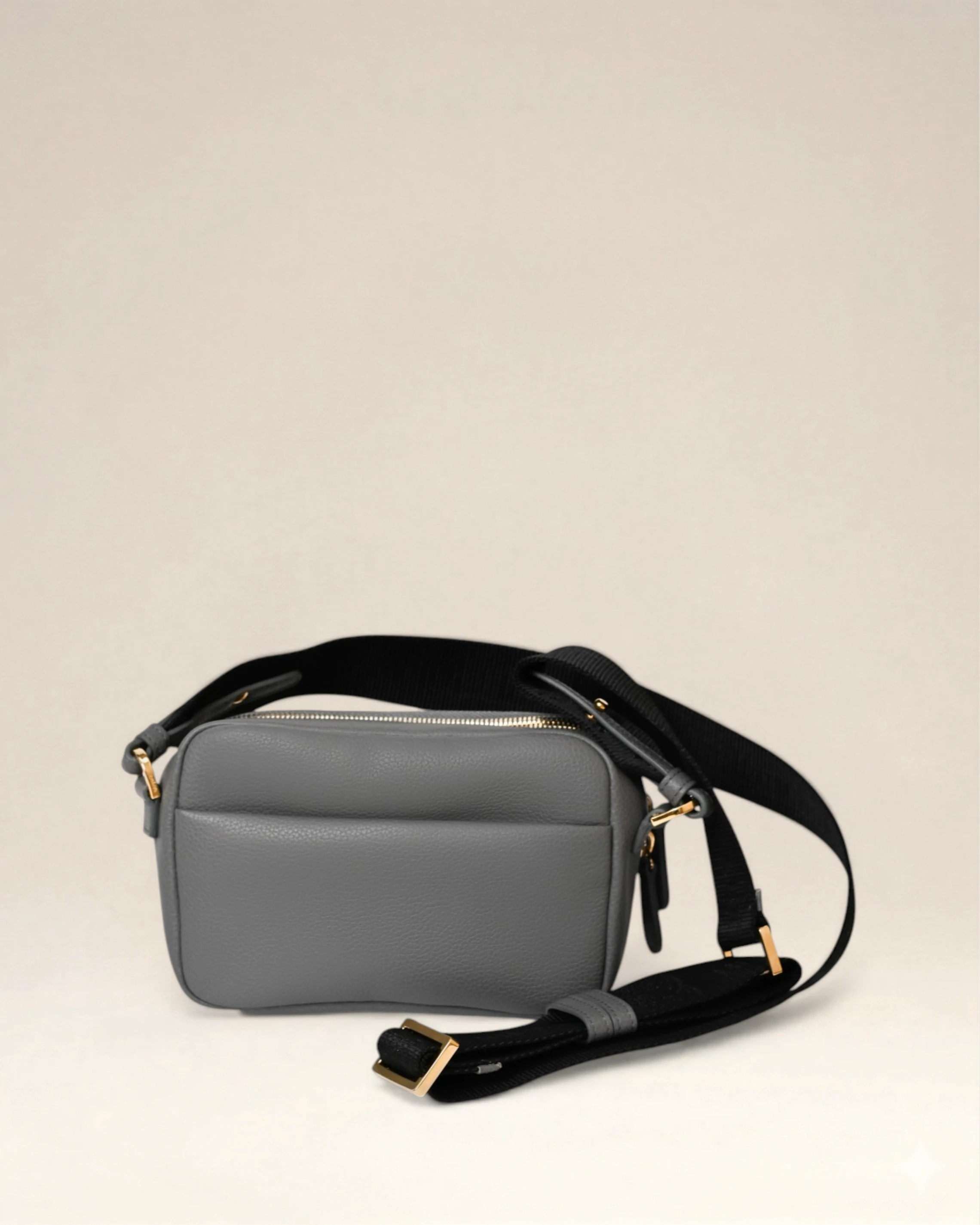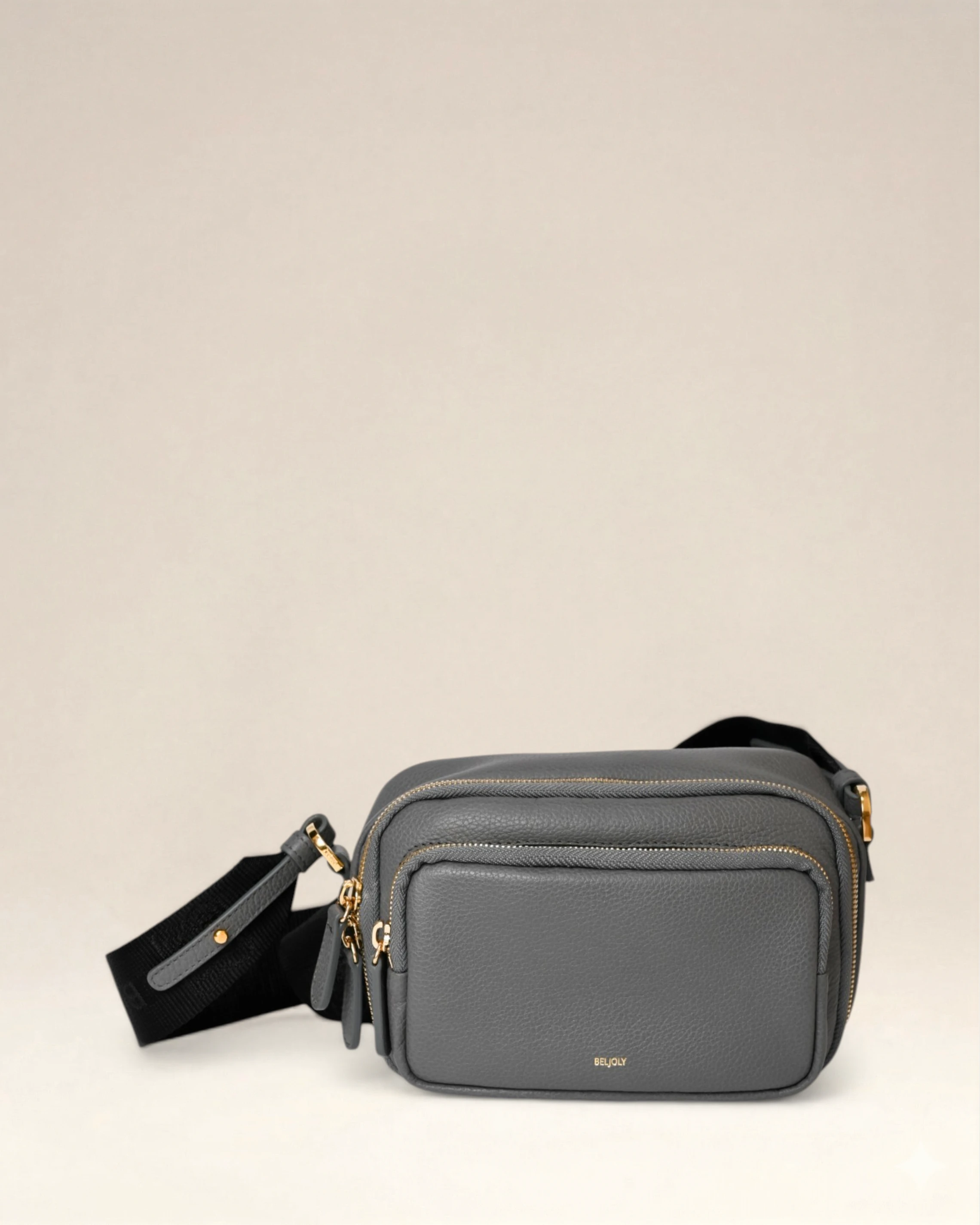 Sac en cuir vachette embosse graine, double en coton, deux compartiments avec zips, sangle ajustable, porté crossbody. Métallerie doree. Dimensions : 21,5*13*6