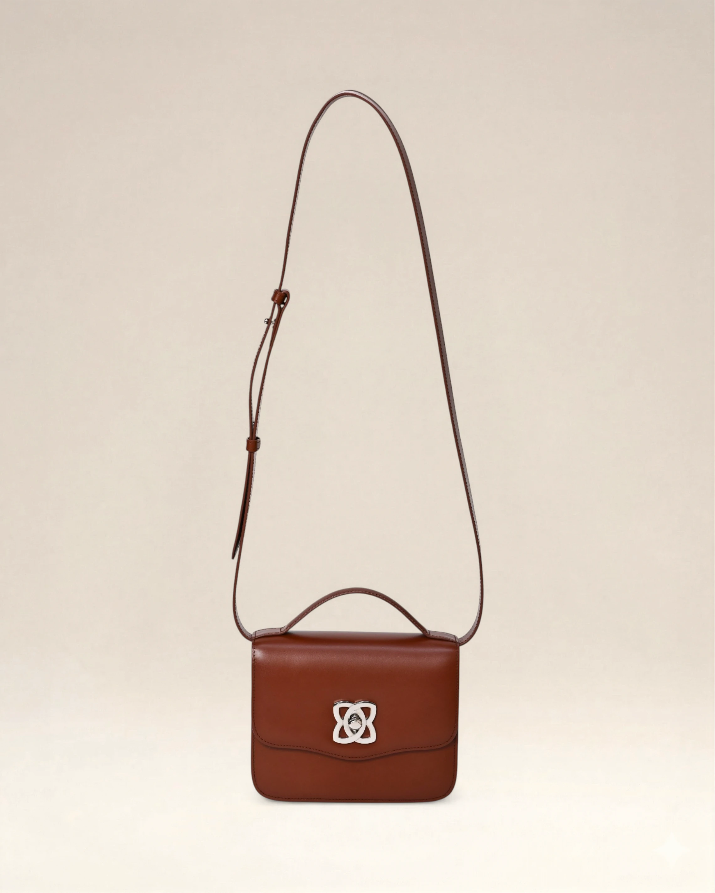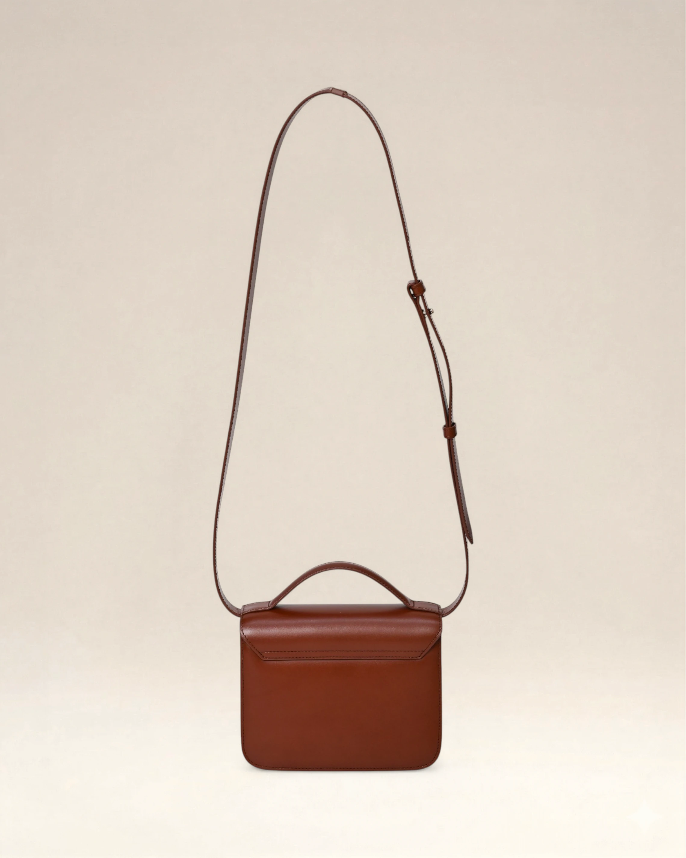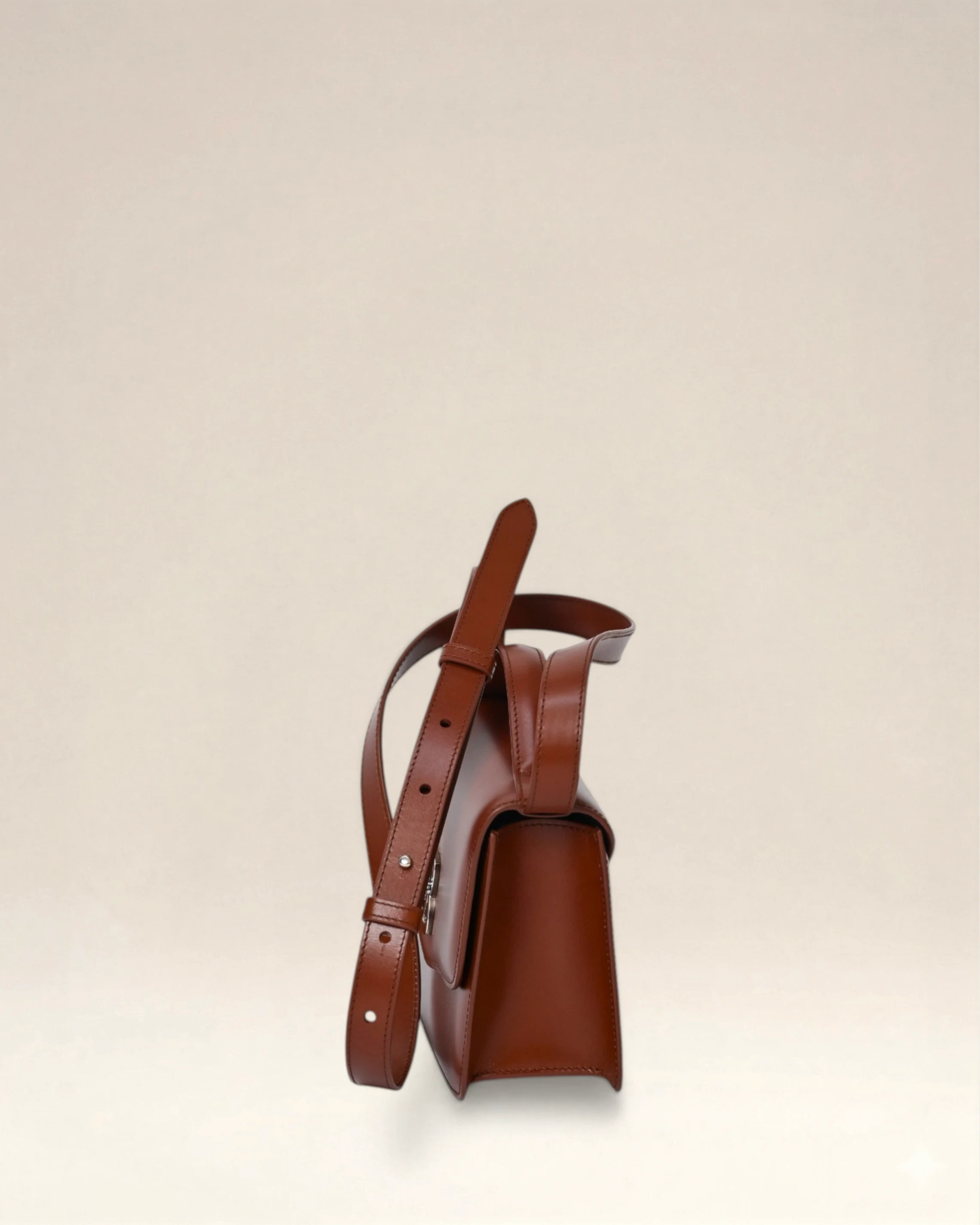Sac en cuir vachette, double en coton et agneau velours, un compartiment central avec une poche plaquée, bandoulière amovible et ajustable, porté crossbody ou main. Métallerie doree. Dimensions : 18,5*14,5*7,5