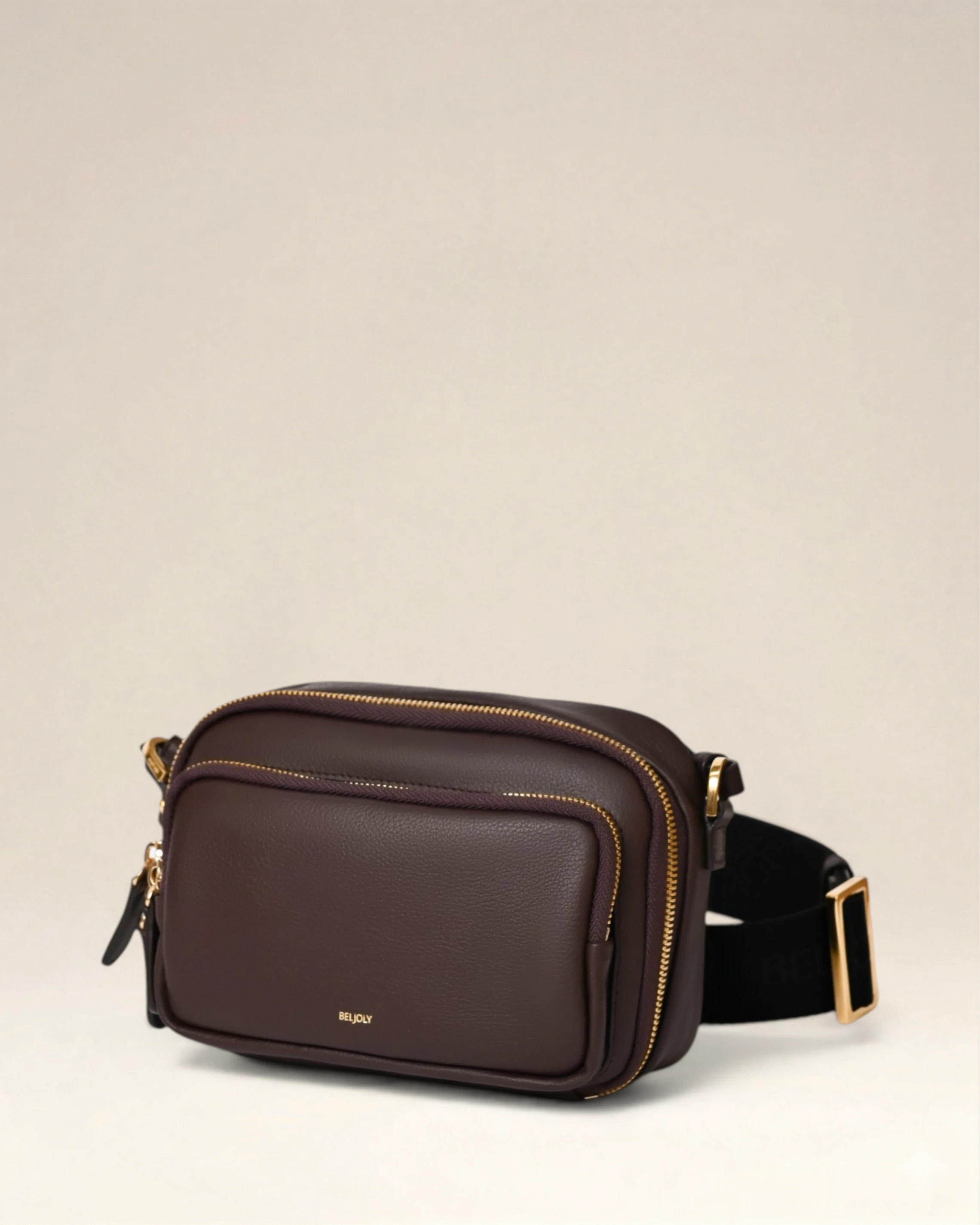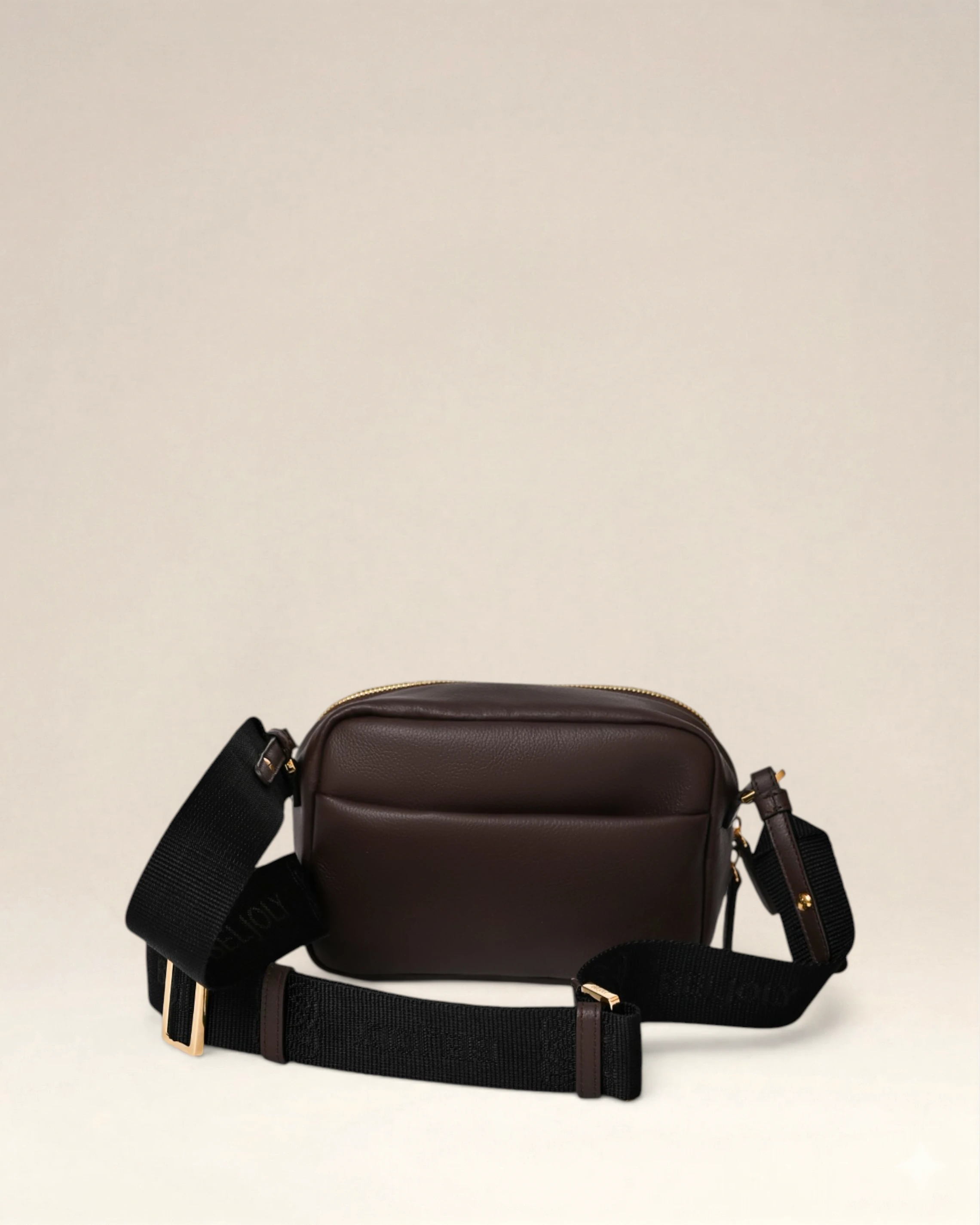 Sac en cuir vachette embosse graine, double en coton, deux compartiments avec zips, sangle ajustable, porté crossbody. Métallerie doree. Dimensions : 21,5*13*6